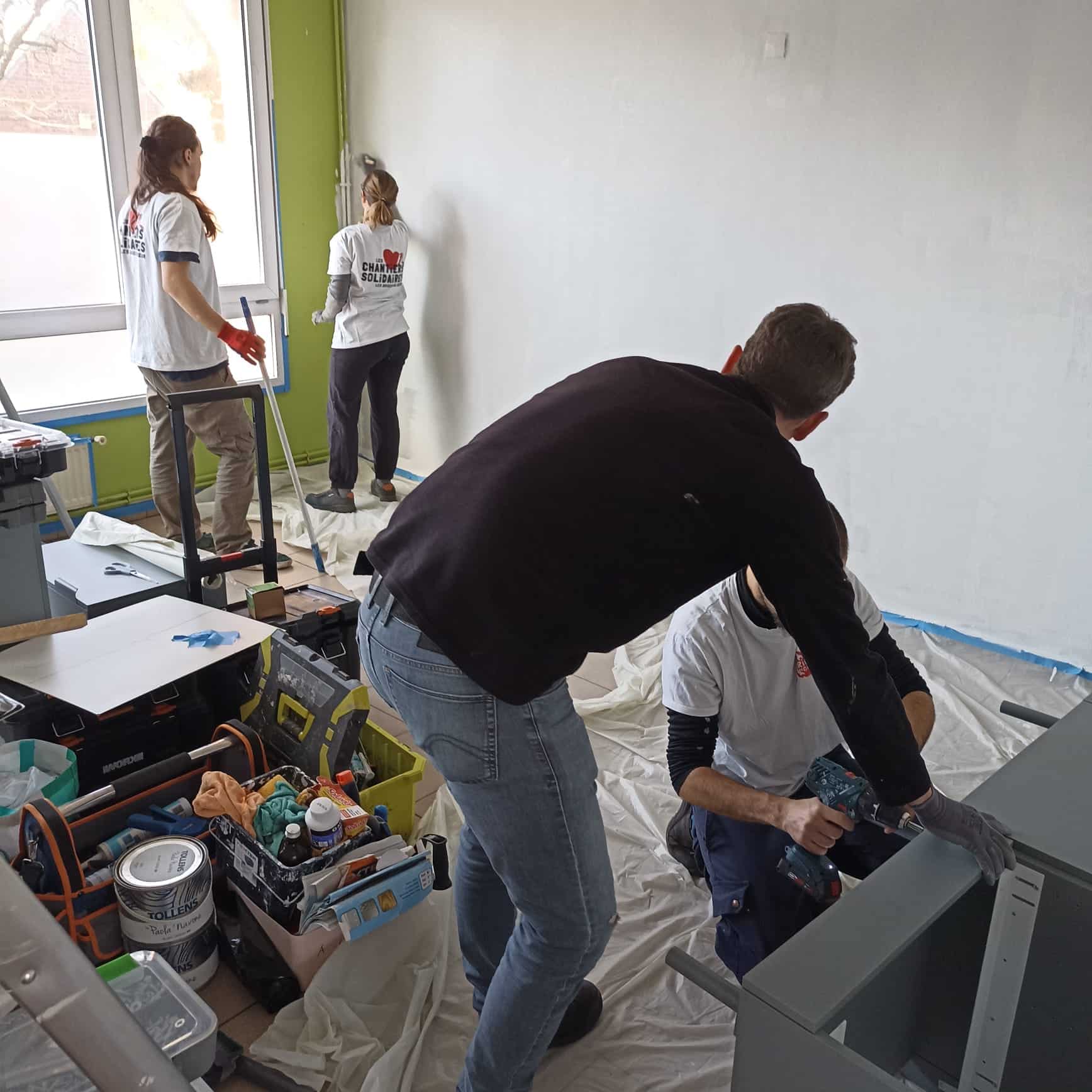 Ensemble, nous avons installé une cuisine, un meuble de salle de bain et redonné vie aux locaux grâce à la mise en peinture. Une belle réalisation collective dont chacun peut être fier.