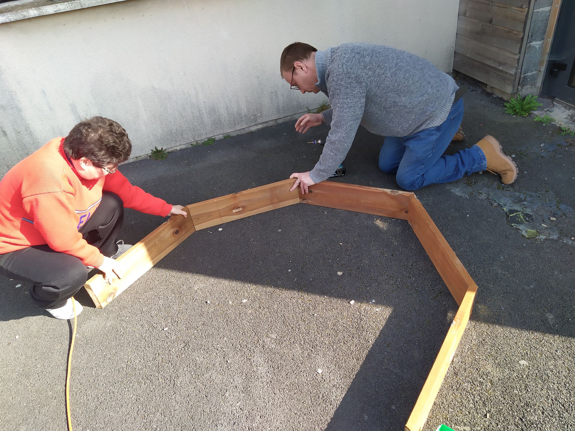 Le chantier solidaire s’est déroulé du 9 au 18 mars à l’Espace Claudy de Noyette à Anzin, avec l’accompagnement de Carlos, animateur technique chez les Compagnons Bâtisseurs. L’objectif était de réaliser une table de pique-nique avec toiture ainsi qu’un ensemble de bacs à légumes en nid d’abeilles, afin de créer un espace convivial et favoriser les usages extérieurs autour du jardinage et du partage.